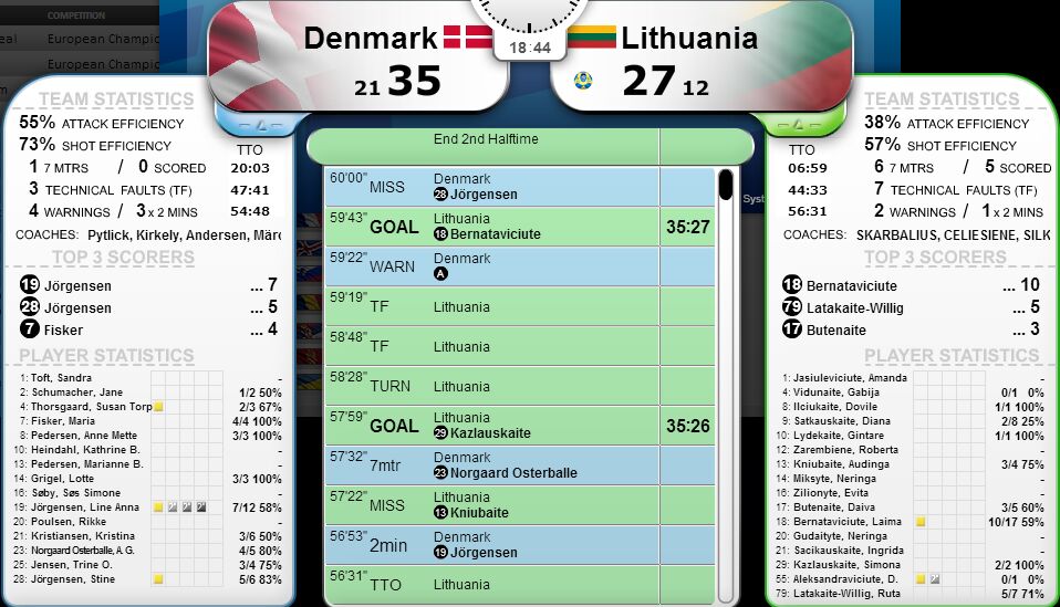 Danija – Lietuva 35:27 (21:12). 1648 žr. L.A.Jorgensen 7, S.Jorgensen 5/L.Bernatavičiūtė 10, R.Latakaitė 5, D.Būtėnaitė 3, A.Kniubaitė 3, S.Kazlauskaitė 2, D.Šatkauskaitė 2, G.Lydekaitė 1, D.Ilčiukaitė 1.