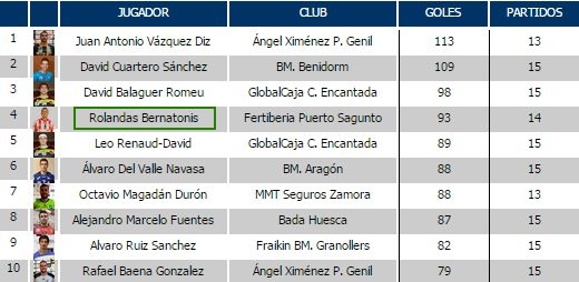 Puente Chenilio „Angel Ximenez“ – Puerto Sagunto „Fertiberia“ (Bernatonis 10, Malašinskas 4) 33:27.