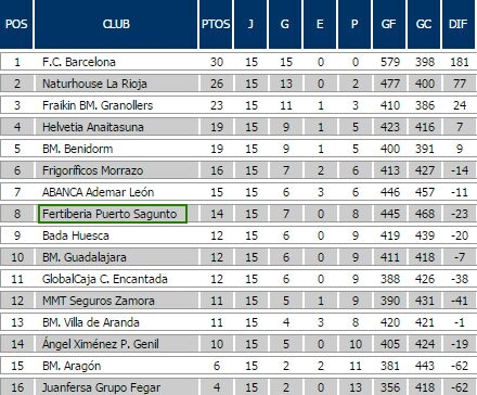 Lentelė po pirmojo rato: 30 – „Barcelona“, 26 – „La Rioja“, 23 – „Fraikin“, 19 – „Anaitasuna“, „Benidorm“, 16 – „Morrazo“, 15 – „Ademar“, 14 – „Fertiberia“, 12 – „Bada“, „Guadalajara“, „Encantada“, 11 – „MMT Seguros“, „Villa de Aranda“, 10 – „Angel Ximenez“, 6 – „Aragon“, 4 – „Juanfersa“.