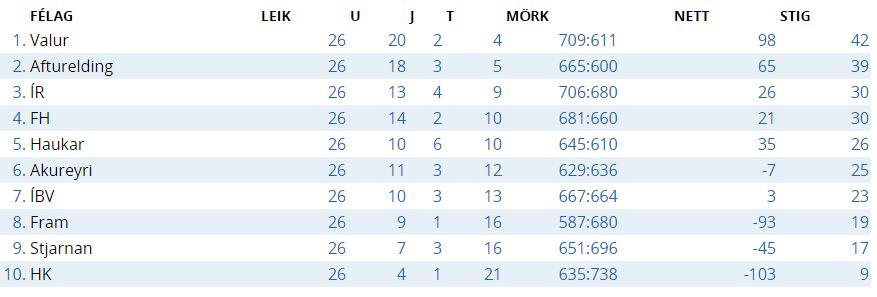 Per 22 reguliariojo sezono rungtynes „Haukar“ iškovojo 28 taškus. Atkrintamųjų varžybų ketvirtfinalyje Hafnarfjordziro ekipa susitiks su tiek pat taškų surinkusia, bet vienu laipteliu aukščiau užkopusia Vestmanaijaro IBV komanda.