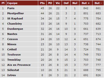 Sostinės rankininkai čempionato viduryje buvo atsilikę, tačiau 22-ame ture įveikė pagrindinius varžovus ir sumažino skirtumą iki minimalaus, o paskui sulaukė dar vienos Monpeljė komandos nesėkmės ir pakilo į pirmąją vietą. Pats PSG nuo lapkričio mėnesio nepralaimėjo nė sykio ir per 18 pastarųjų rungtynių iškovojo net 35 taškus.