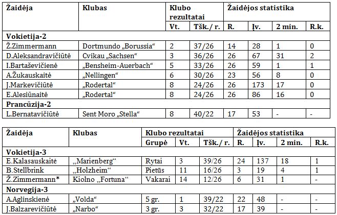 Marijos Gedroit ir Agnetės Grigaitės komandos palyginti su praėjusiu čempionatu žaidė silpniau, bet šios dvi lietuvės džiugino sirgalius įvarčių gausa. M.Gedroit iš Hafnarfjordziro „Haukar“ ekipos Islandijos lygos rezultatyviausių žaidėjų sąraše užėmė trečiąją vietą (144 įvarčiai per 22 rungtynes), o A.Grigaitė iš Vienos Noištato „McDonald‘s“ ekipos tarp geriausių Austrijos lygos snaiperių buvo trečia (139 įvarčiai per 21 rungtynes).