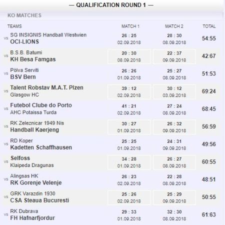 EHF taurė. Sužaistos pirmojo etapo rungtynės