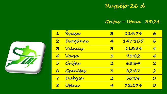Panevėžio „Grifas“ – „Utena“ 35:24 (14:9).