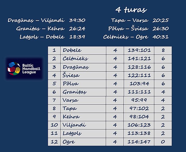 Dėl to buvo nuspręsta, kad Latvijos komandos kol kas rungtyniaus tik tarpusavyje. O latvių dvikovose taškų nepraradusi Duobelės „Tenax“ po ketvirtojo turo tapo vienvalde Baltijos lygos lydere.