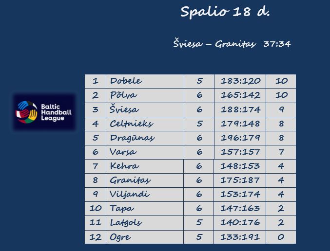 Sekmadienį įvyko vienerios Baltijos ir Lietuvos vyrų rankinio lygų rungtynės. Jose Vilniaus „Šviesa“ namie nugalėjo Kauno „Granitą“ 37:34 (19:14).