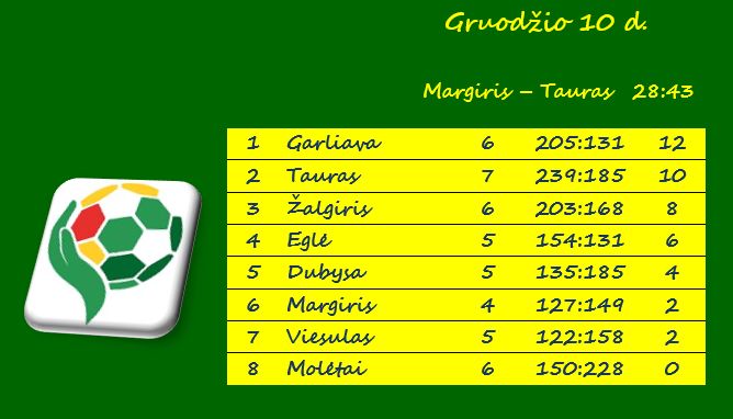 Alytaus „Margiris“ – Vilniaus „Tauras“ 28:43 (13:21).