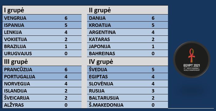 Kroatija – Bahreinas 28:18 (13:8). Horvatas 8, Maričius 4, Martinovičius 4/ Ahmedas 6, Alsayyadas 6.