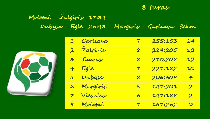 | 8 | „Molėtai“ | 7 | 167:262 | 0 |