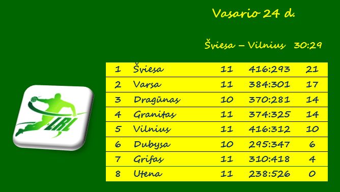 Vilniaus „Šviesa“ – „Vilnius“ 30:29 (16:11).