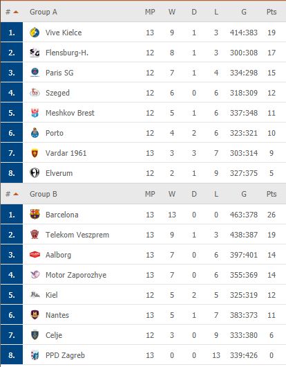„Barcelona“ šį sezoną laimėjo visas 13 rungtynių, surinko 26 taškus ir užsitikrino pirmąją vietą B grupėje. Antrąją vietą šioje grupėje užsitikrino „Veszprém“ (19 taškų). Barselonos ir Vesprėmo klubams EHF sprendimas dėl nukeltų rungtynių neturėjo jokios įtakos.
