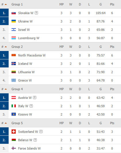Šešių kelialapių savininkės paaiškėjo dar šeštadienį, o sekmadienį kitų dviejų grupių lemiamose rungtynėse pergales šventė Islandijos ir Ukrainos rankininkės. Islandės nugalėjo lietuves 33:23, ukrainietės – izraelietes 31:24.