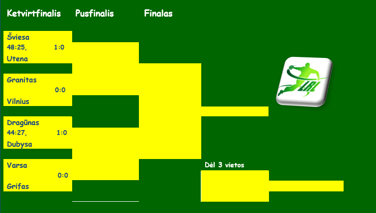 Alytaus „Varsa“ ir Panevėžio „Grifas“ šeštadienį žais pirmąsias ketvirtfinalio rungtynes, o pradėti Kauno „Granito“ ir „Vilniaus“ mačą numatoma balandžio 20 dieną.