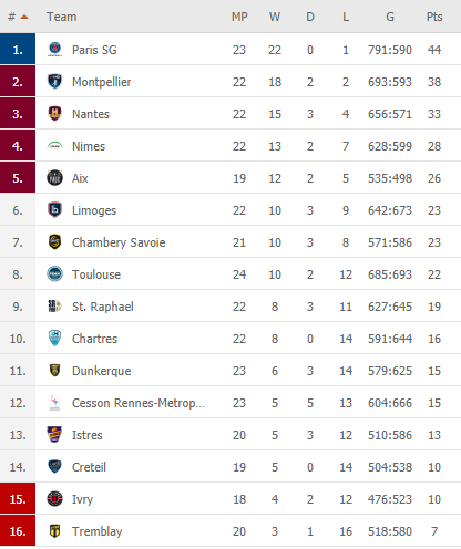 Įdomu, kad sekmadienį visos trejos Prancūzijos lygos rungtynės baigėsi vieno įvarčio skirtumu. Bet jei Paryžiuje paskutinės akimirkos nebuvo labai karštos („Nantes“ pirmavo dviem įvarčiais, o paskutinis šeimininkų įvartis nieko nebepakeitė), tai dėl išlikimo kovojantis „Ivry“ paskutinę akimirką pelnė nuostabų įvartį į „Aix“ vartus („Ivry“ nugalėjo 23:22), o „Chartres“ apsigynė nuo svarbiausios „Dunkerque“ atakos („Chartres“ nugalėjo 29:28).