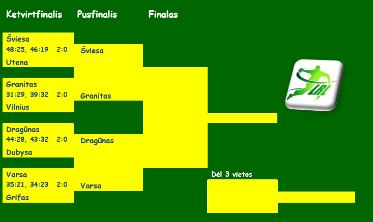 Lietuvos vyrų rankinio lygoje baigėsi ketvirtfinalio etapas. Šeštadienį paskutinėse Vilniaus „Šviesa“ išvykoje sutriuškino „Uteną“ 46:19 ir laimėjo ketvirtfinalio seriją 2:0.