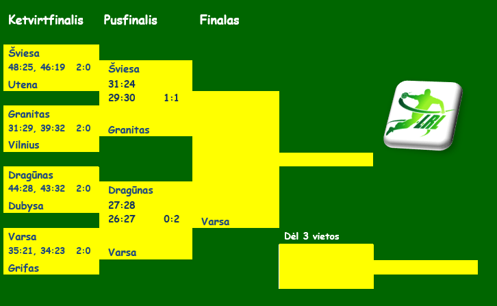 Su kuo žais finale, „Varsos“ rankininkai sužinos trečiadienį per trečiąsias Vilniaus „Šviesos“ ir Kauno „Granito“ rungtynes. Šeštadienį „Granitas“ antrosiose pusfinalio rungtynėse namie įveikė reguliariojo sezono nugalėtoją „Šviesą“ 30:29 (15:10) ir išlygino serijos rezultatą 1:1.