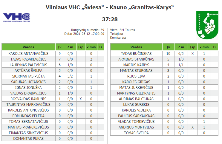 „Granitas“: Bučinskas 10, Stankevičius 5, Kairys 4, Sturonas 3, Eiva 2, Giedraitis 1, Balčiūnas 1, Jurkevičius 1, Grigas 1.
