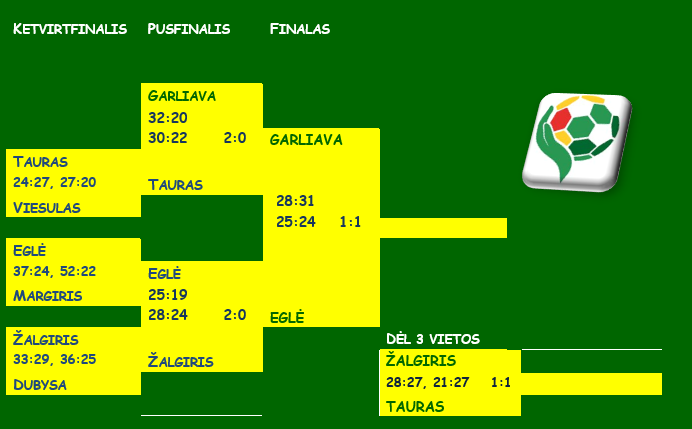 Šeštadienį antrąsias rungtynes žaidė ir bronzos apdovanojimų siekiančios komandos. Vilniaus „Tauras“ namie įtikinamai nugalėjo Kauno „Žalgirį“ 27:21 (13:9) ir išlygino serijos rezultatą 1:1. Mažajame finale kovojama iki dviejų pergalių, o lemiamos trečiosios rungtynės numatomos trečiadienį Kaune.
