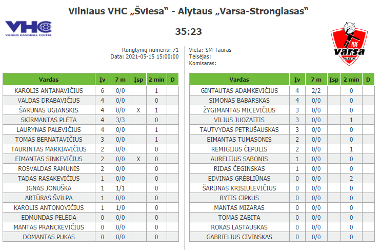 Vilniaus „Šviesa“ – Alytaus „Varsa“ 35:23 (17:15).