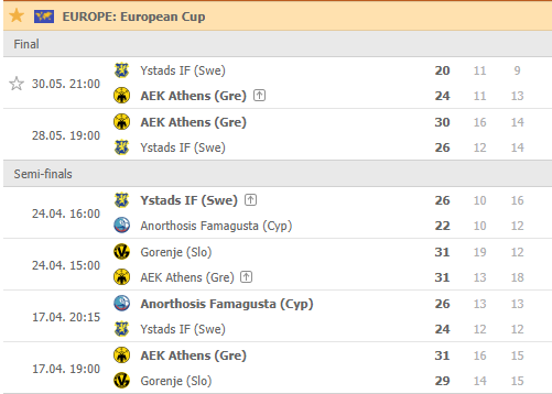 Europos taurės savininkai turėjo paaiškėti dar prieš savaitę, o komandos turėjo po kartą žaisti Istade ir Atėnuose. Tačiau finalas buvo nukeltas „Ystads IF“ klube įsisukus koronavirusui. Europos rankinio federacija (EHF) ne tik nukėlė abejas rungtynes, bet ir nusprendė, kad jos bus žaidžiamos tik AEK arenoje.