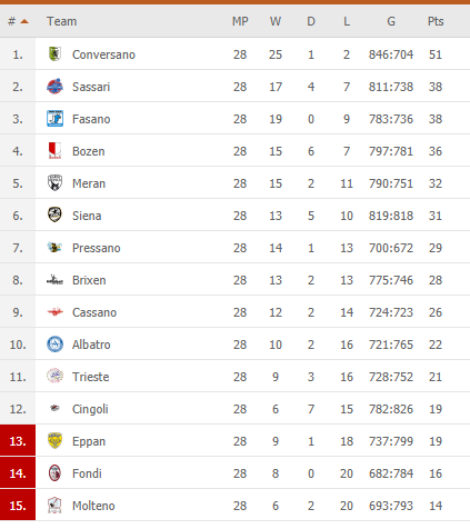 Epano rankininkai lemiamose rungtynėse dėl išlikimo pirmojoje lygoje pralaimėjo tiesioginiams varžovams, bet neprarado teisės žaisti su stipriausiais. „Eppan“ ir „Cingoli“ surinko vienodai taškų, bet Epano komanda užėmė aukštesnę vietą dėl geresnių rezultatų tarpusavio rungtynėse. Jei „Eppan“ trečiadienį būtų pralaimėjusi dviejų įvarčių skirtumu, būtų išlėkusi į antrąją lygą.