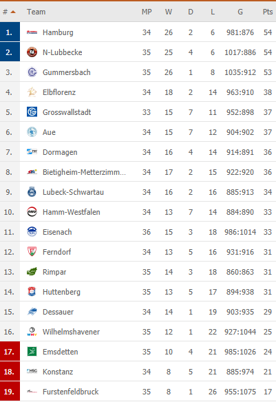 Pirmauja: 54/34 – „Hamburg“, 54/35 – „N-Lubbecke“, 53/35 – „Gummersbach“, 38/34 – „Elbflorenz“, 37/33 – „Grosswallstadt“, 37/34 – „Aue“.