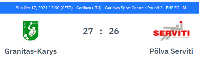 Kauno „Granitas“ – Pylvos „Serviti“ 27:26 (9:14). Jovaišas 12, Kairys 5, Šarkauskas 4, Eiva 3, Dambrauskas 2, Zėringis 1 / Kase 7, Sarapuu 4.