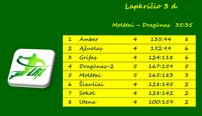 „Molėtai“ – Klaipėdos „Dragūnas-2“ 35:35 (18:21).