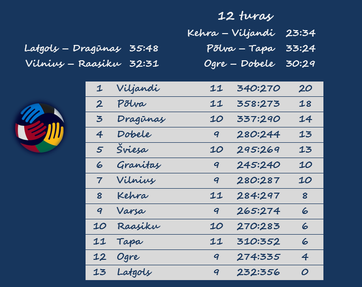 Dvejos Estijoje vykusios rungtynės baigėsi didelėmis lygos lyderių pergalėmis. „Viljandi“ išvykoje nugalėjo Kehros „Horizon“ 34:23, Pylvos „Serviti“ namie įveikė „Tapa“ 33:24.