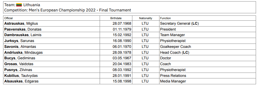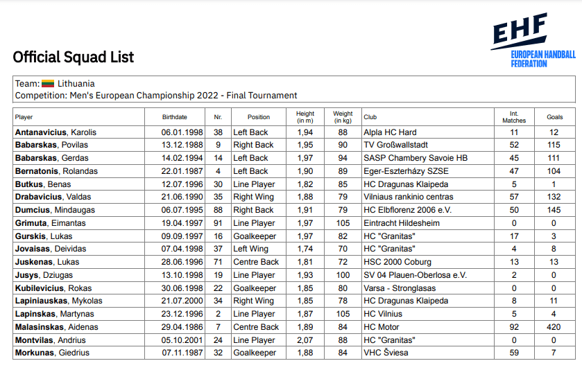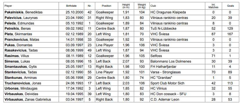 Preliminariuose sąrašuose yra po 35 pavardes, vėliau sąrašai turės būti sutrumpinti iki 20 žaidėjų. Per Europos pirmenybių rungtynes komandos galės registruoti 16 rankininkų.