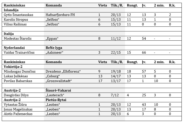 Du Lietuvos rankininkai – Karolis Stropus ir vartininkas Vilius Rašimas – atstovauja „Selfoss“ klubui, kol kas surinkusiam 15 taškų ir užimančiam šeštąją vietą. K.Stropus iki žiemos pertraukos pelnė 13 įvarčių.