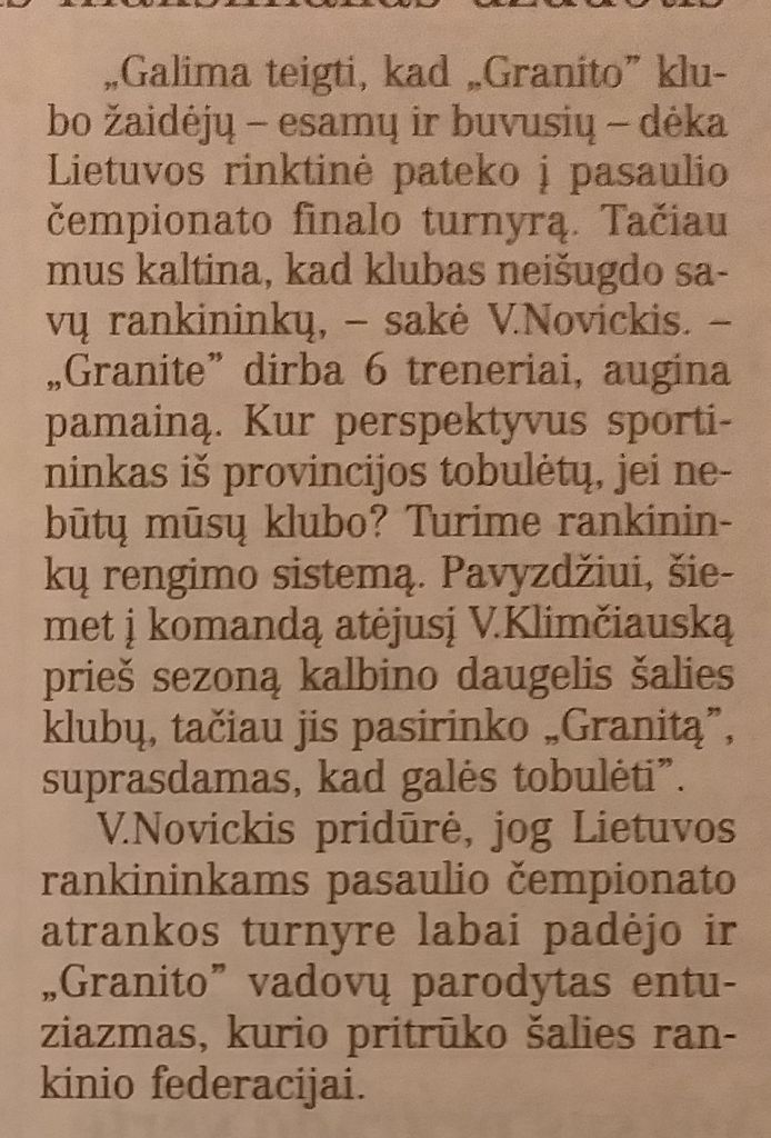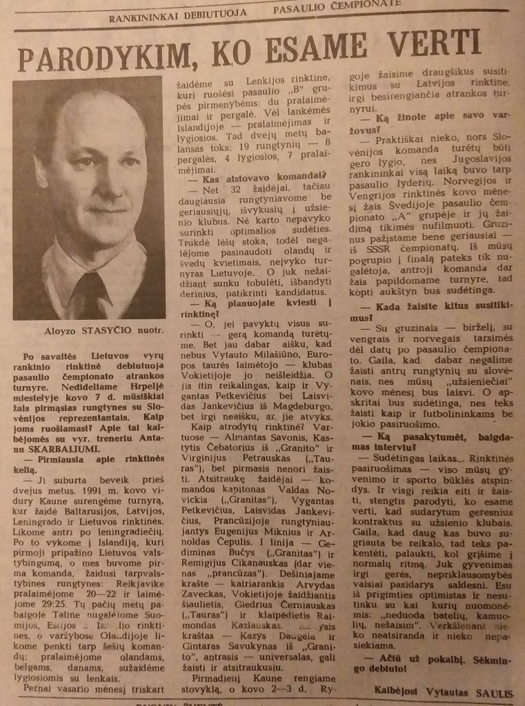 „Pirmąsias rungtynes su Saudo Arabija turime laimėti. Pergalė įkvėptų kovai su Jugoslavija. Po to lauks dvikova su Alžyru – vėl įveikiamas varžovas. Norėtųsi grupėje užimti kuo aukštesnę vietą, nes po to lauks labai stiprūs varžovai iš kitos grupės. Vis dėlto ką nors prognozuoti sunku – nežinome, kokias turėsime galimybes rengtis pasaulio čempionatui“, – iš Australijos parvežęs kelialapį į pasaulio pirmenybes, tolimesnius planus kalbėdamas su „Lietuvos rytu“ dėstė rinktinės trenerio pareigose Antaną Skarbalių pakeitęs Valdemaras Novickis.