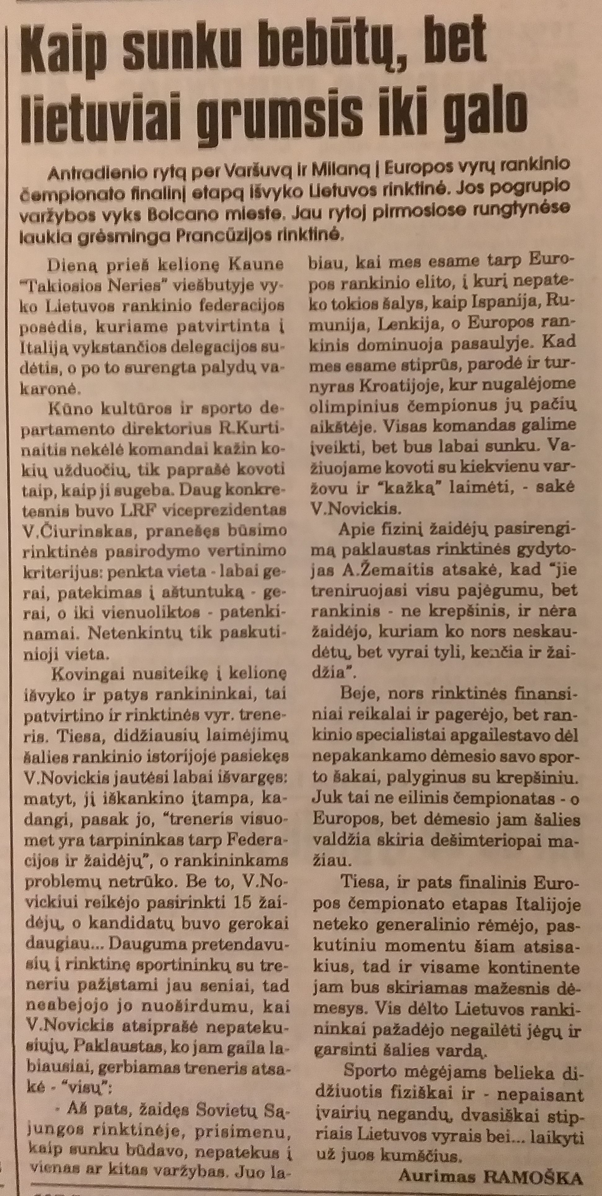 Lietuvos rankininkai tikslą pasiekė nepaisydami to, kad konkurencijos sąlygos buvo nelygios. „Skaudžiausia, kad kitose šalyse juokiasi iš mūsų ir bado pirštais dėl skurdo, – kalbėdamas su „Lietuvos rytu“ apgailestavo treneris V.Novickis. – Po Europą važinėjame tik autobusais.