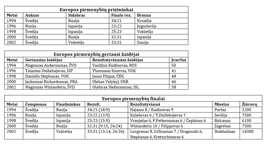 Švedai laimėjo ne tik atidarymo, bet ir uždarymo rungtynes. Pirmųjų Europos pirmenybių finale Švedijos rinktinė sutriuškino Rusijos komandą 34:21 (18:9).