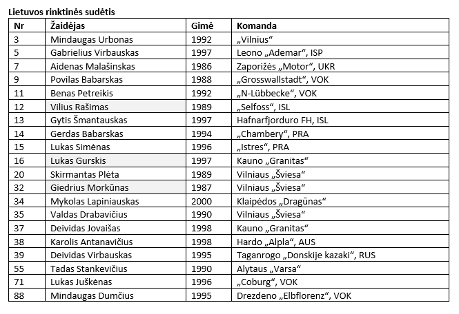 Į Košicę išvyko 19 žaidėjų, bet vėliau prie jų turėtų prisidėti Mykolas Lapiniauskas. Jis praėjusią savaitę užsikrėtė koronavirusu ir dabar izoliacijoje laukia neigiamo testo rezultato.