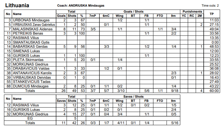 Metimai. Lietuva – 26/49, Slovakija – 31/50.