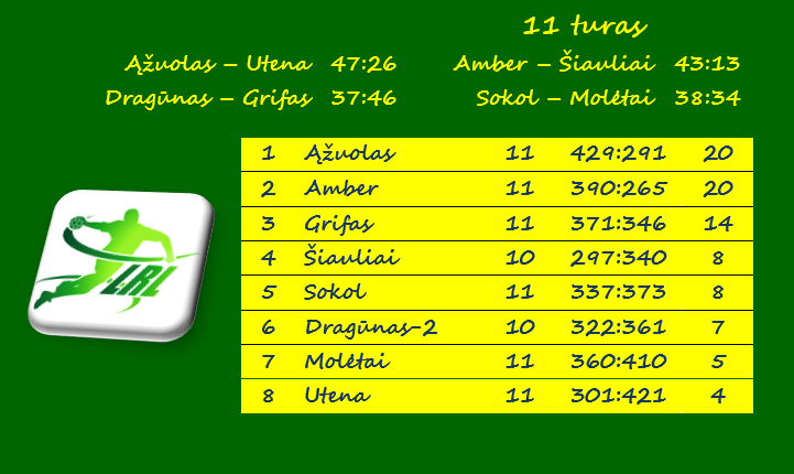 Įtikinamai nugalėjo ir Panevėžio „Grifas“, išvykoje pranokęs Klaipėdos „Dragūno“ dublerius 46:37 (24:20) ir įsitvirtinęs trečiojoje vietoje. Nors panevėžiečiai trečiosios vietos aritmetiškai dar neužsitikrino, 6-7 taškų persvara prieš persekiotojus iš Šiaulių, Šalčininkų ir Klaipėdos yra beveik nepanaikinama.