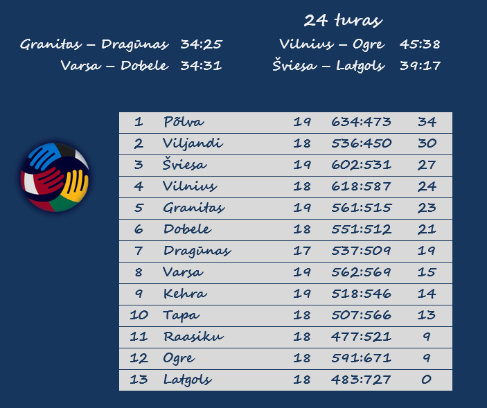 | Įmesti įvarčiai | 45 – Vilnius (su Ogre) | 48 – Dragūnas (su Latgols) |