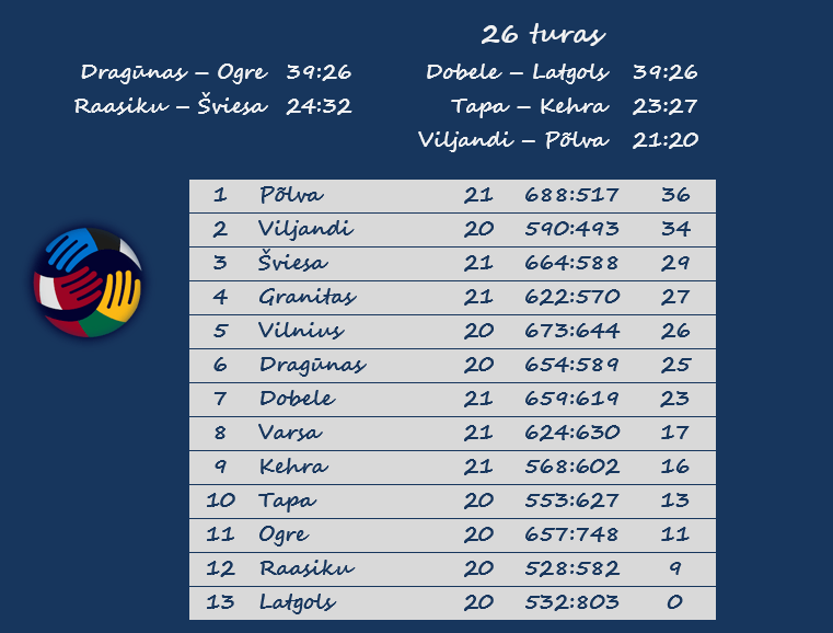 Po šios dvikovos neliko abejonių, kad „Serviti“ ir „Viljandi“ iškovos du tiesioginius kelialapius į finalo ketvertą. Tiesa, Viljandžio ekipa aritmetiškai antrosios vietos dar neužsitikrino, bet ją prarastų nebent tuo atveju, jei pralaimėtų visas likusias rungtynes, o artimiausia persekiotoja „Šviesa“ taškų nebarstytų.