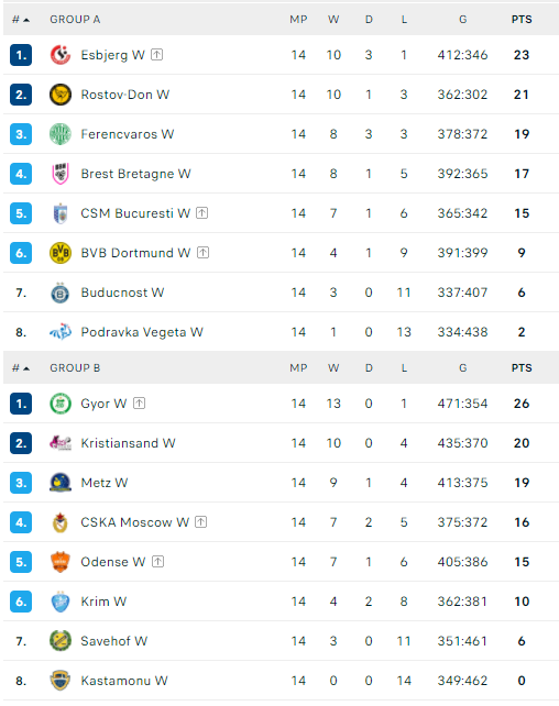 A grupėje dar prieš paskutinį turą pirmąją vietą užsitikrinusiai „Esbjerg“ komandai taip pat nepavyko pabaigti šio etapo pergale. Esbjergo rankininkės išvykoje sužaidė lygiosiomis su Bukarešto CSM klubu 29:29. Dėl antrosios vietos šioje grupėje akis į akį susirėmė „Brest-Bretagne“ ir „Rostov“ komandos. Nors rungtynės vyko Prancūzijoje, triuškinamą pergalę 29:18 šventė viešnios iš Rusijos.
