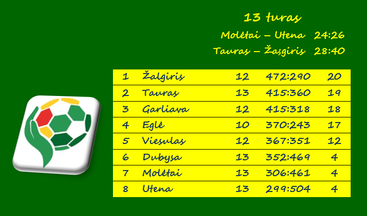 „Žalgiriui“ (20 taškų) liko dvejos rungtynės su „Viesulu“ ir „Egle“,
