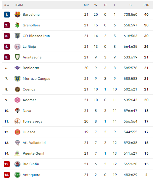 „Ademar“ labai blogai pradėjo šį sezoną ir žiemps pradžioje atsidūrė tarp komandų, kovojančių dėl išlikimo „Asobal“ lygoje. Tačiau po žiemos pertraukos „Ademar“ pradėjo kilti turnyro lentelėje, o nuo vasario vidurio pasiekė keturias pergales iš eilės ir dabar užima devintąją vietą (20 taškų per 21 rungtynes).