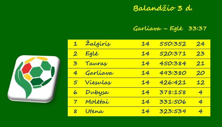 „Garliava“ – Vilniaus „Eglė“ 33:37 (19:16).