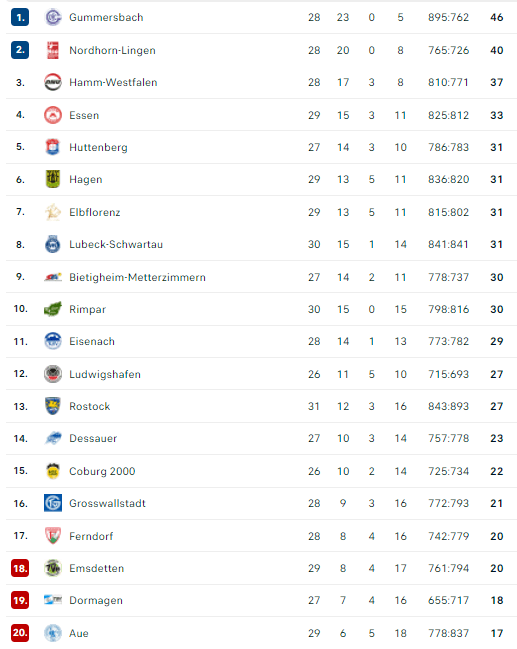 Pirmauja: „Gummersbach“ – 46, „Nordhorn“ – 40, „Hamm“ – 37, „Essen“ – 33, „Huttenberg“, „Eintracht“, „Elbflorenz“, „Lubeck“ – po 31, … „Coburg“ – 22, „Grosswallstadt“ – 21.