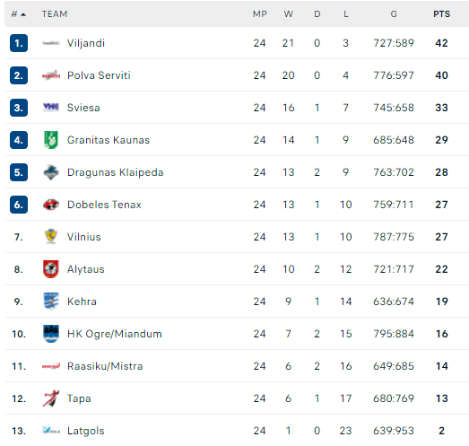 Reguliariajame sezone geriau žaidė ir dvi pirmąsias vietas užėmė abu Estijos klubai. „Viljandi“ per 24 rungtynes iškovojo 42 taškus, „Serviti“ – 40 taškų. Dvi geriausios reguliariojo sezono komandos iškart pateko į finalo ketvertą, o Lietuvos ekipoms dėl kelialapių į Viljandį reikėjo kovoti ketvirtfinalyje.