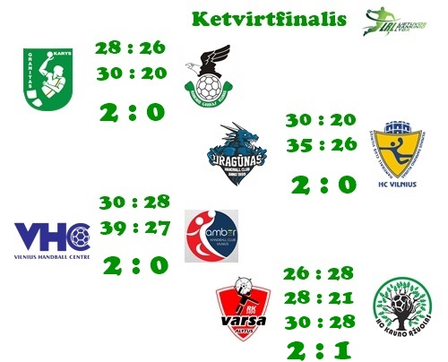 Pusfinalyje iki dviejų pergalių žais „Granitas“ – „Dragūnas“ ir „Šviesa“ – „Varsa“.