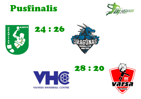 Vilniaus „Šviesos“ ir Klaipėdos „Dragūno“ rankininkai laimėjo pirmąsias Lietuvos vyrų rankinio lygos pusfinalio rungtynes. Čempionės vardą ginanti „Šviesa“ savo salėje nugalėjo Alytaus „Varsą“ 28:20 (13:12), o šių metų Lietuvos taurės laimėtojas „Dragūnas“ išvykoje įveikė Kauno „Granitą“ 26:24 (12:8).