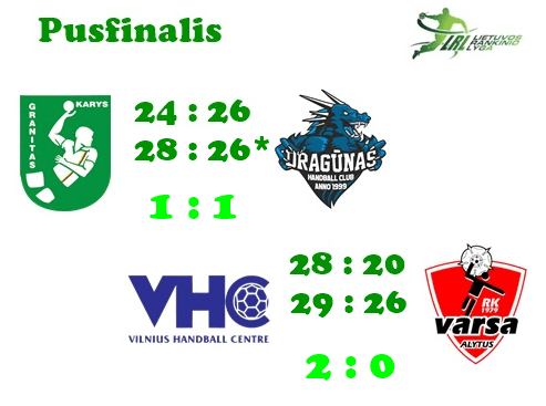 Šeštadienį antrosiose pusfinalio rungtynėse čempionės vardą ginanti „Šviesa“ išvykoje įveikė „Varsą“ 29:26 (15:16) ir laimėjo seriją iki dviejų pergalių 2:0. „Granitas“ varžovų aikštėje per pratęsimą palaužė „Dragūną“ 28:26 (12:8, 21:21) ir išlygino serijos rezultatą 1:1. Lemiamos trečiosios pusfinalio rungtynės trečiadienį vyks Kaune.