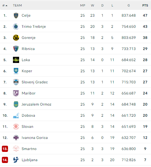 Likus vienam turui iki pirmenybių pabaigos „Celje“ turi 47 taškus, „Trimo“ – 43, praėjusių metų čempionė „Gorenje“ – 38.