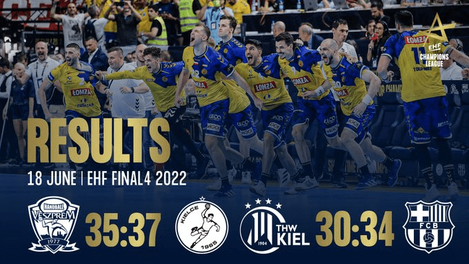 Čempionės vardą ginanti „Barcelona“ nugalėjo „Kiel“ klubą 34:30 (19:18), „Kielce“ – „Veszprem“ komandą 37:35 (16:18).